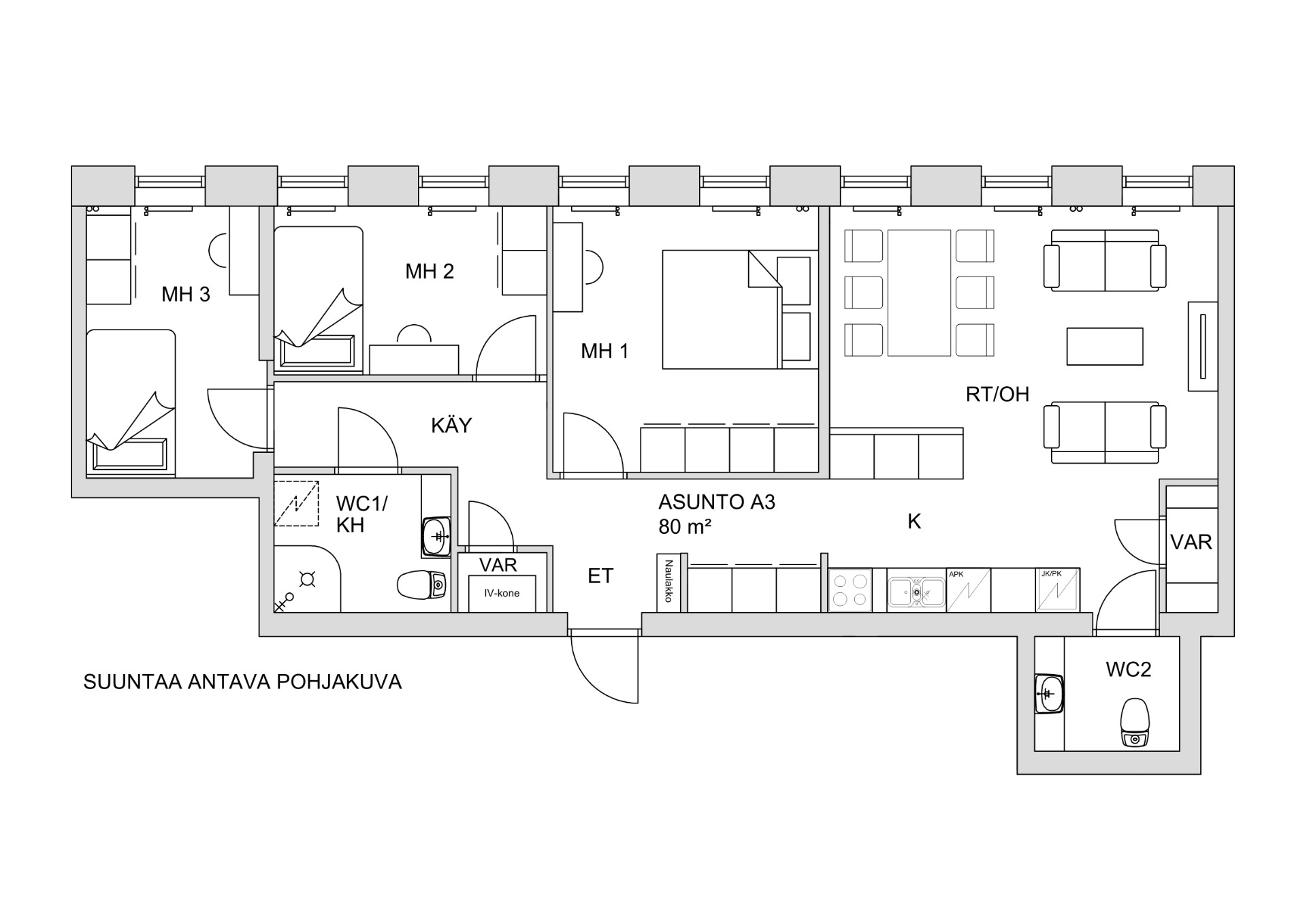 3h+avok, 81 m², 1-krs, joenrantanäkymä